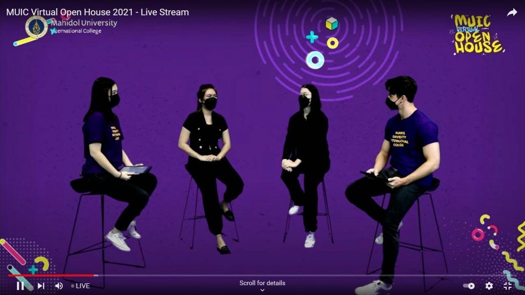 Mahidol University International College (MUIC) held the MUIC Virtual Open House 2021 live online via Zoom, Facebook, and YouTube during November 8-13, 2021.