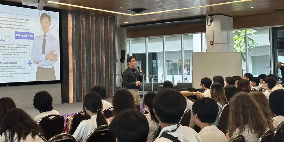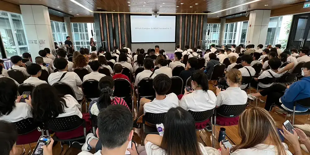 A group of 120 teachers and students from Grades 8 – 12 of International Christian School Nonthaburi (ICSN) visited Mahidol University International College (MUIC) on October 16, 2023 at Charinyarasami Hall, Aditayathorn Building.