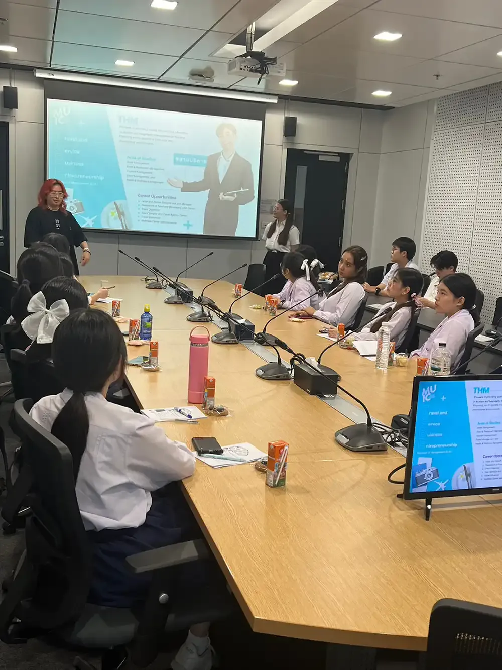 With the group formally welcomed at Room A302, Aditayathorn Building, MUIC staff members facilitated workshops where the students learned much about MUIC’s international programs and admissions procedure which will be helpful for their plans to apply for university. There was also a Q&A session at the end. The visitors were later given a guided tour of MUIC buildings and facilities by MUIC students.