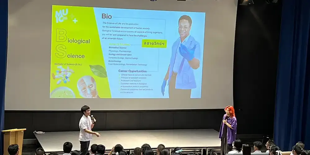 A group of 60 teachers and students from Phuket Wittayalai School visited Mahidol University International College (MUIC) on February 8, 2024.