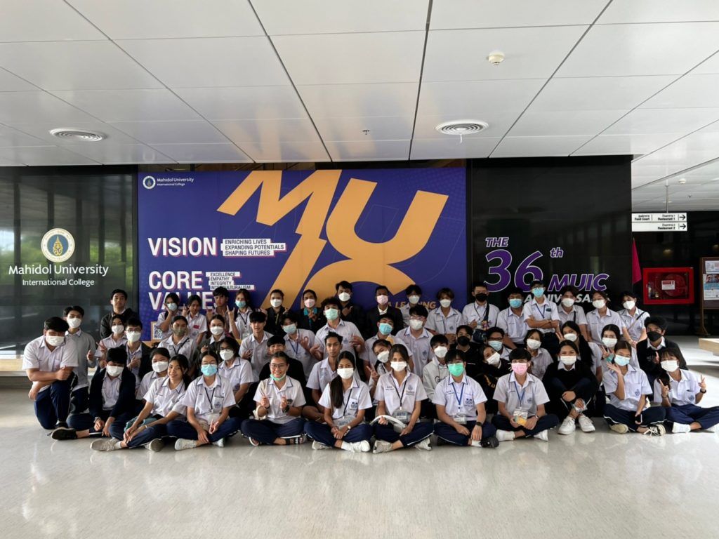 A group of 70 teachers and students from Satree Phuket School - International Program visited Mahidol University International College (MUIC) on August 11, 2022 at Exhibition Hall A235, Aditayathorn Building.