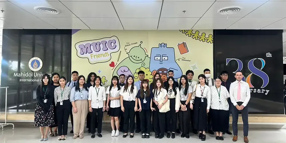 A delegation from Mahidol University (MU) visited Mahidol University International College (MUIC) on March 9, 2026 in order to study the development and application of MUIC’s artificial intelligence (AI) in enhancing student services.