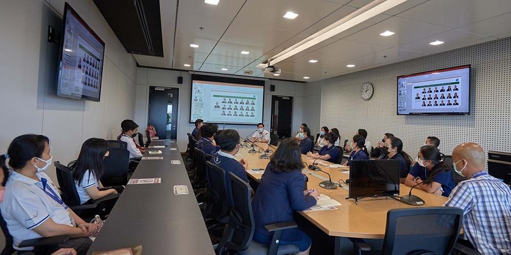 Asst. Prof. Dr. Chatchawan Panraksa, Associate Dean for Administration, and the MUIC Energy Saving Committee welcomed the visitors at Room 302, Aditayathorn Building.