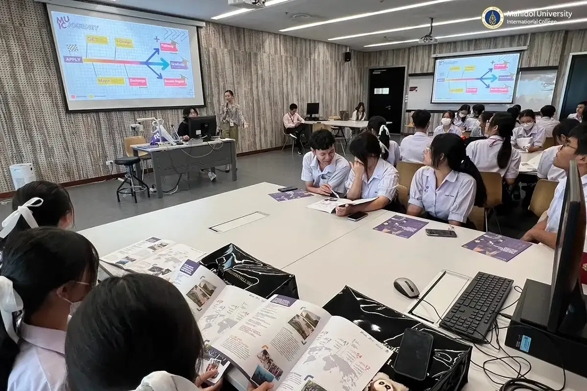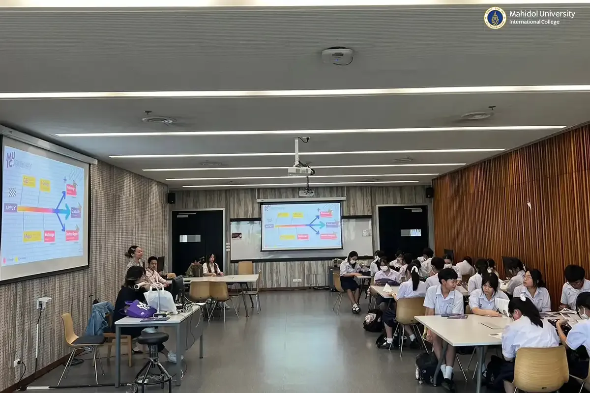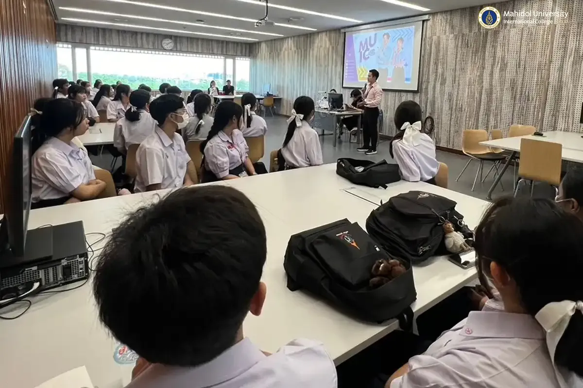 A group of 40 teachers and students from Nawamintrachinuthit Satriwittaya Bhuddhamonthon School visited Mahidol University International College (MUIC) on February 19, 2025.