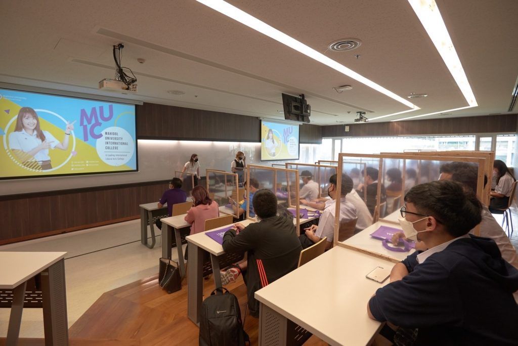 A group of 30 teachers and students from Phuket Wittayalai School (English Program) visited Mahidol University International College (MUIC) on May 20, 2022. They were hosted at the Case Base Learning Room in Aditayathorn Building, MUIC.