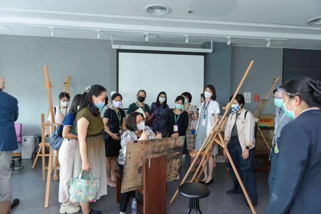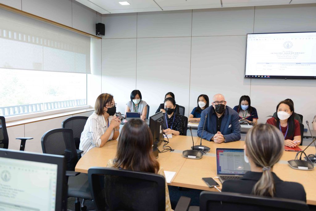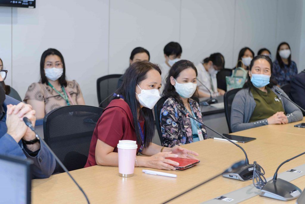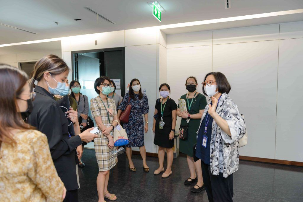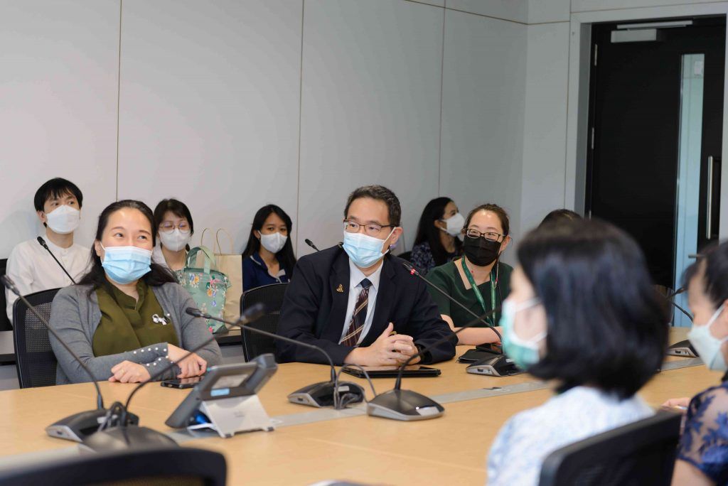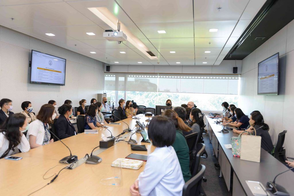 A group of 31 lecturers and staffs from Faculty of Medicine Siriraj Hospital visited Mahidol University International College (MUIC) on June 16, 2022 to meet with the Executives of the Research Promotion and Management Section and faculty members of the Fine and Applied Arts Division at Aditayathorn Building, Salaya campus.Prof. Chulathida Chomchai, M.D., MUIC Dean, welcomed the visitors.