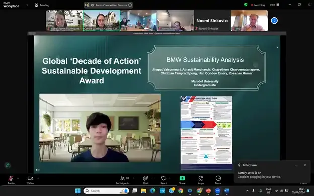 On July 9, 2024, there was a Virtual Award Ceremony, announcing the final results of the global competition. For undergraduate level, there were a total of seven awards, from which MUIC’s BBA students’ posters received six awards, including the highest-level poster award of Global ‘Decade of Action’ Sustainable Development Award.