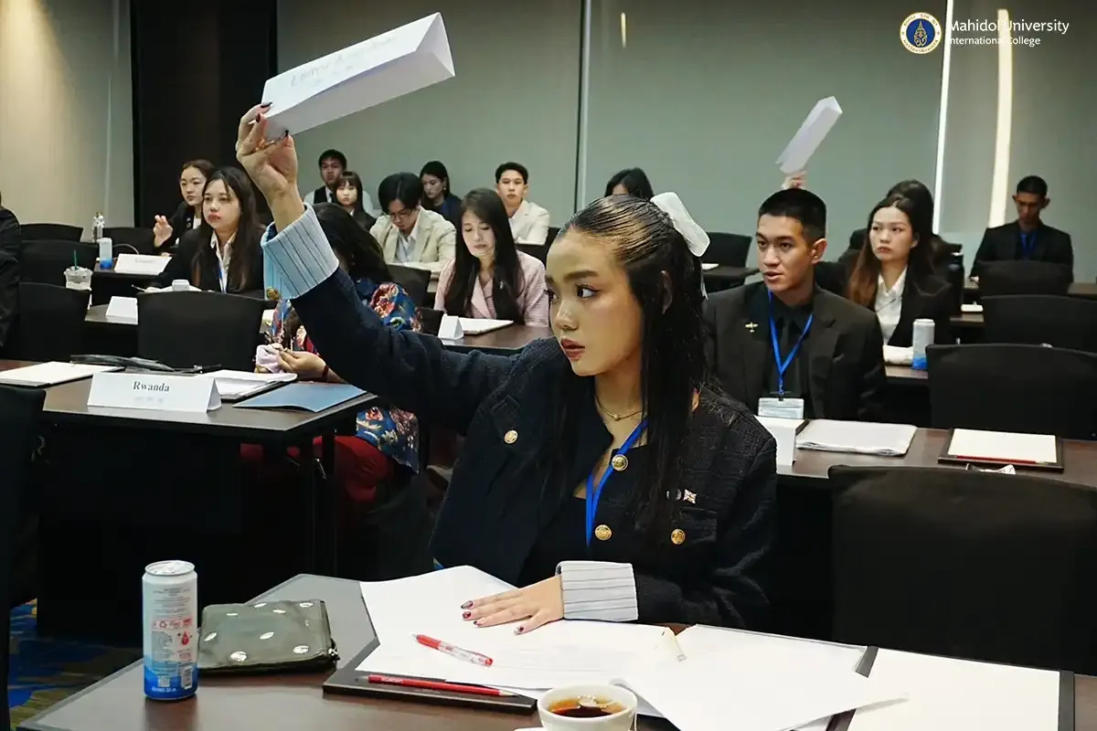 The Mahidol University International College Model United Nations (MUICMUN) Club recently sent nine delegates to participate in the first Thailand National Model United Nations Conference (TNMUN) held at the United Nations ESCAP and Lancaster Bangkok Hotel on January 9-12, 2025.