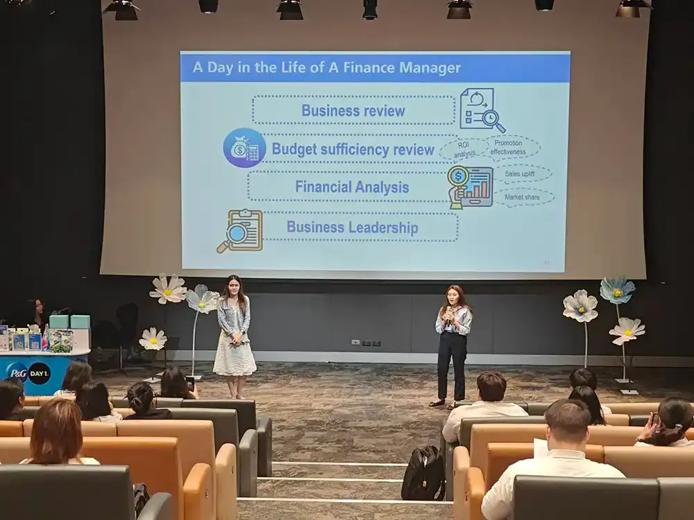The P&G X BA@MUIC session, held at the Spectrum Screening Space, featured senior directors and managers from Procter & Gamble (P&G) who shared their expertise on career planning, job preparation, and personal branding. P&G provided students with insights into real business practices, covering the journey from the first day on the job through various functions across the entire business supply chain. Additionally, they offered valuable guidance on how students can prepare for their careers.