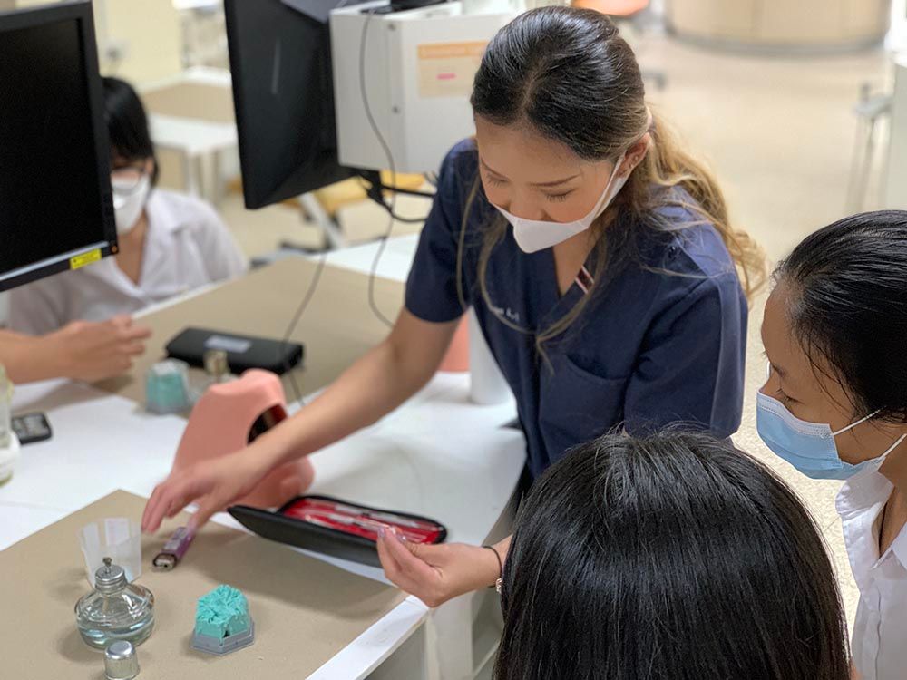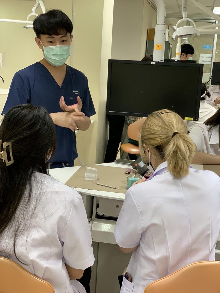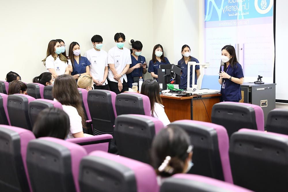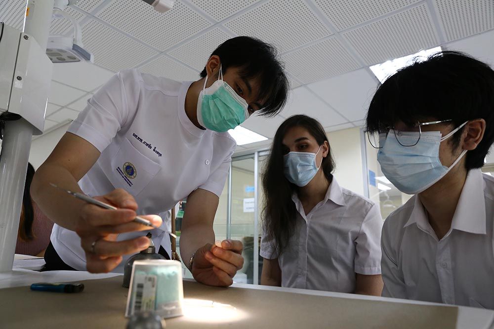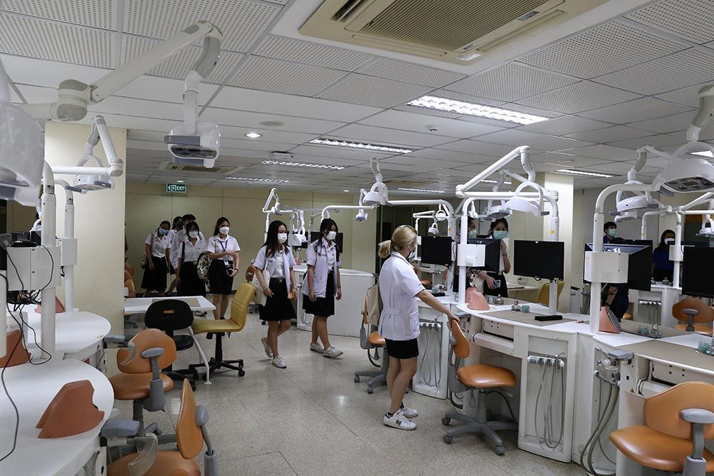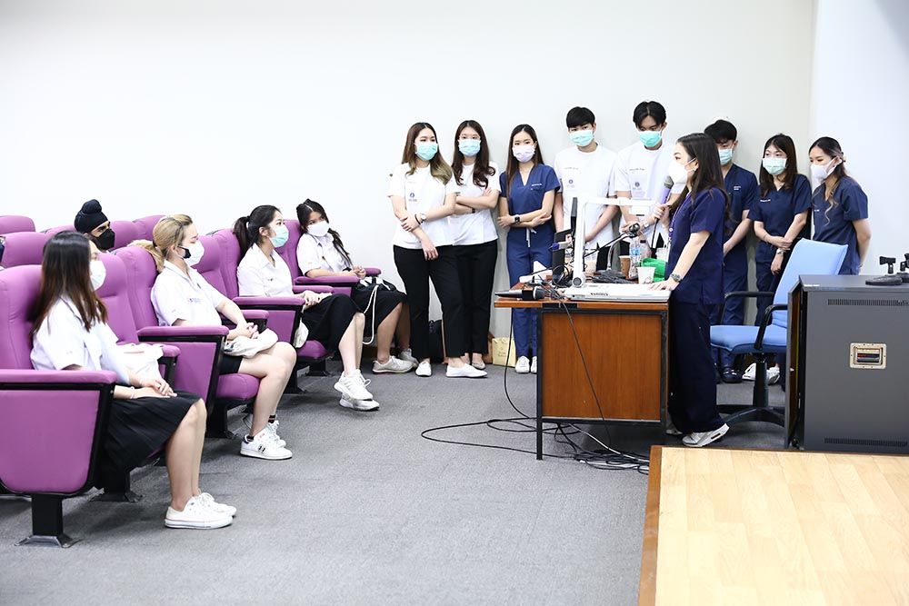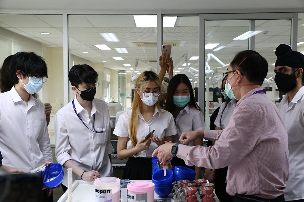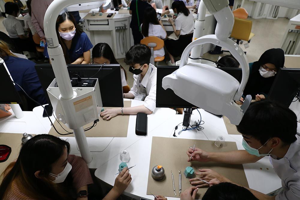 The visit, originally led by Prof. Chulathida Chomchai, M.D. , MUIC Dean, and Asst. Prof. Dr. Tumnoon Charaslertrangsri, Biological Sciences Program Director, was entitled "Pathway to Dentistry and Hand Skill Workshop" which provided Biological Sciences students with a friendly talk on experience-sharing by MUIC alumni, a building and laboratory tour, and hand skill demonstration in the dental simulation laboratory.
