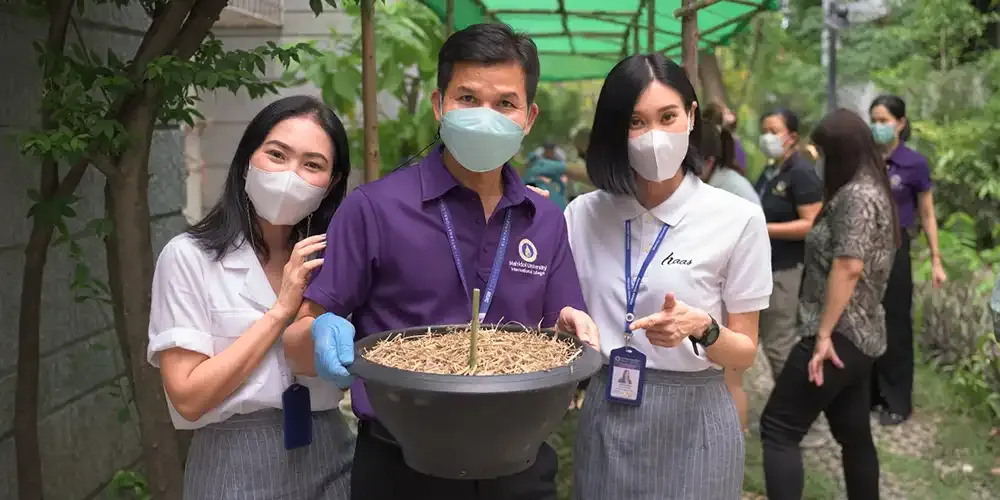 The event corresponded with Mahidol University’s Green University policy and the United Nations’ Sustainable Development Goals (SDGs). During the activity, various techniques of growing vegetables along with effective means of collecting waste were taught to the participants.