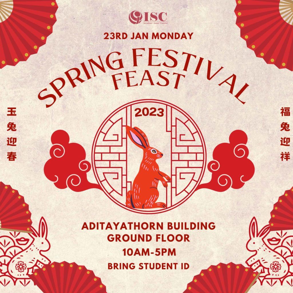 On January 23, 2023, MUIC’s International Student Counselors (ISCs) hosted the college’s first ever Chinese New Year celebration called the “Spring Festival Feast.” It was an entire college event with over 380 participants. The event held a range of Chinese cultural activities such as “Hong-bao” giving (red envelope), “Fu” Chinese calligraphy writing, red ribbon wish writing, and a Chinese culture-inspired photo booth.