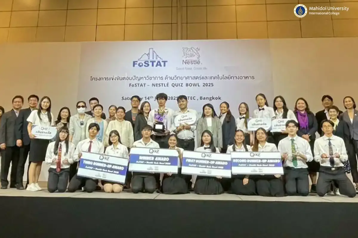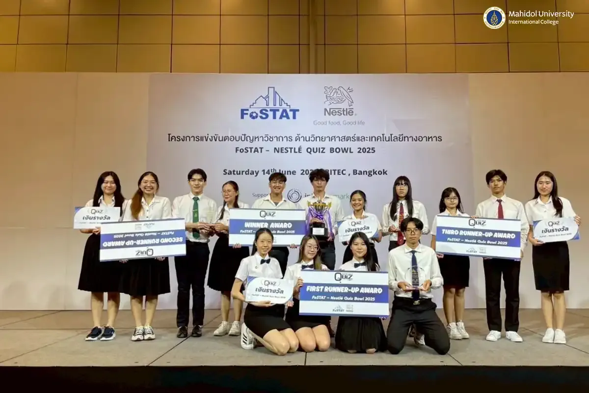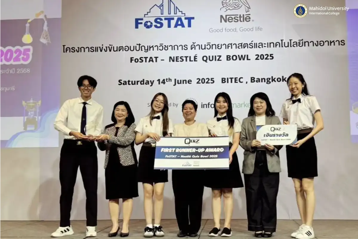 A team of Food Science and Technology students from Mahidol University International College (MUIC) earned 1st Runner-up honors at the Nestlé - FoSTAT Food Science and Technology Quiz Bowl 2025, held on June 14, 2025 at the Bangkok International Trade & Exhibition Centre (BITEC).