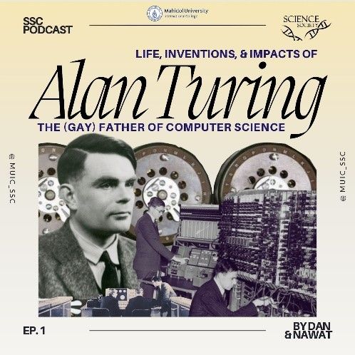 Episode 1: “Life, Invention and Impact of Alan Turing: The (Gay) Father of Computer Science” This first episode, hosted by Suphawit Wongfu and Nawat Ngerncham, is about education, love, achievements, and research career of Alan Turing.