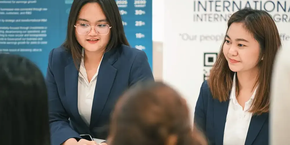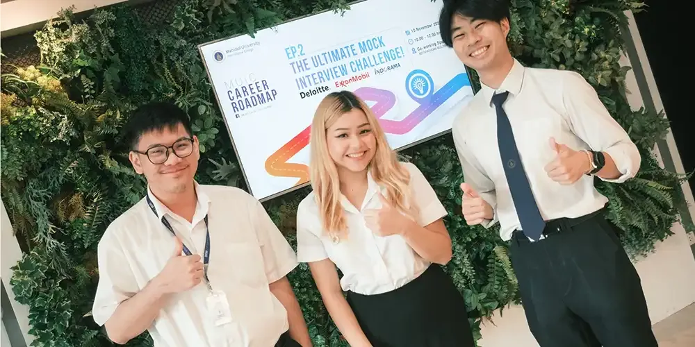 In this event, 15 students whose resumes were selected from the previous “MUIC Career Roadmap EP1: Resume Power-Up and Interview Pro Tip” participated in the EP2 activities which featured experts from three leading companies, namely, Deloitte Consulting SEA, ExxonMobil Ltd., and Indorama Ventures Global Services Ltd. (Head Office).