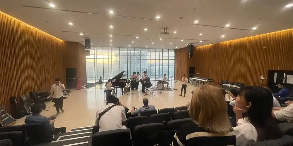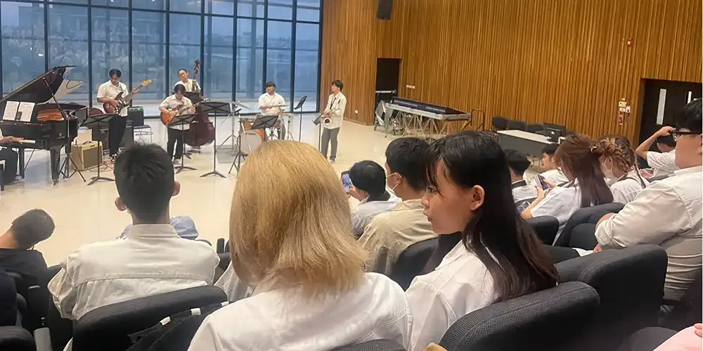 The Music Club of Mahidol University International College (MUIC) offered a mini-tour of the College of Music, Mahidol University (MSMU) and let the 40 participating students experience a full jazz performance by MSMU students as a way to kickstart this semester’s jazz theme.