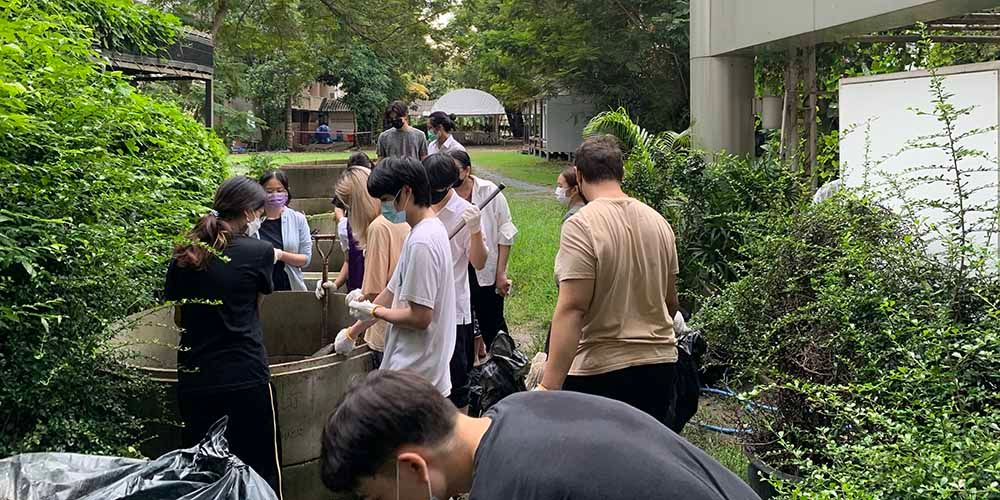 The MUIC Grounds and Operations Section (under their Chief, Khun Sitta Kutsang) installed eight large-scale composting bins in July behind Building 1; now students led by the Nature Lovers and Science Society Clubs are joining hands with the professional staff to fill them up. Funding from the Student Affairs Office for this project is also a much welcome support.