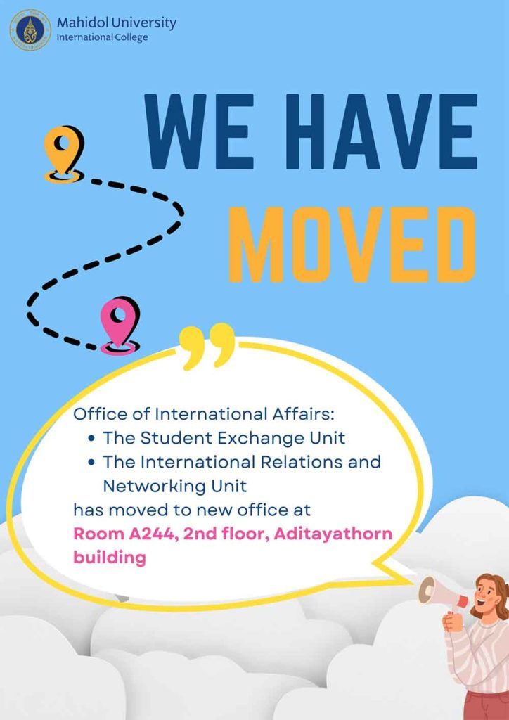 The Office of International Affairs (IA) has moved to room A244, Aditayathorn Building 2nd floor. Our new phone extension number are as follows;
