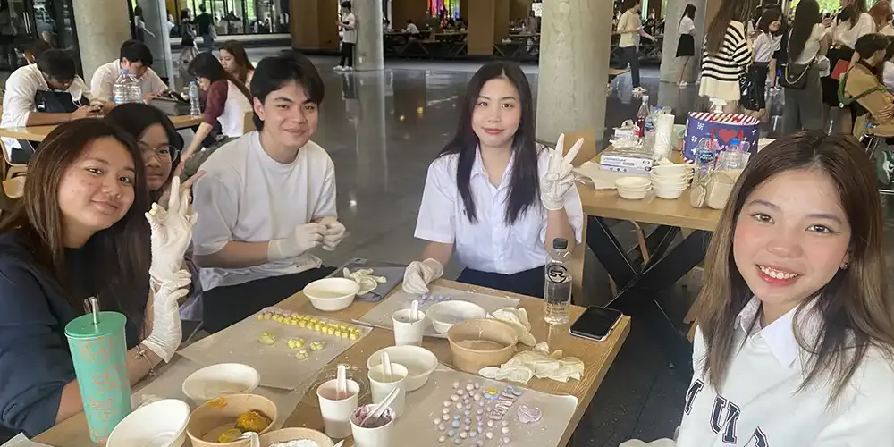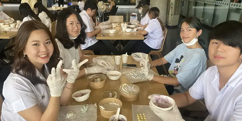 The Rakkeaw Club of Mahidol University International College (MUIC) recently hosted an event called "Taste of Tradition: Bualoy Making" on September 4, 2023 at the Ground Floor of Aditayathorn Building.