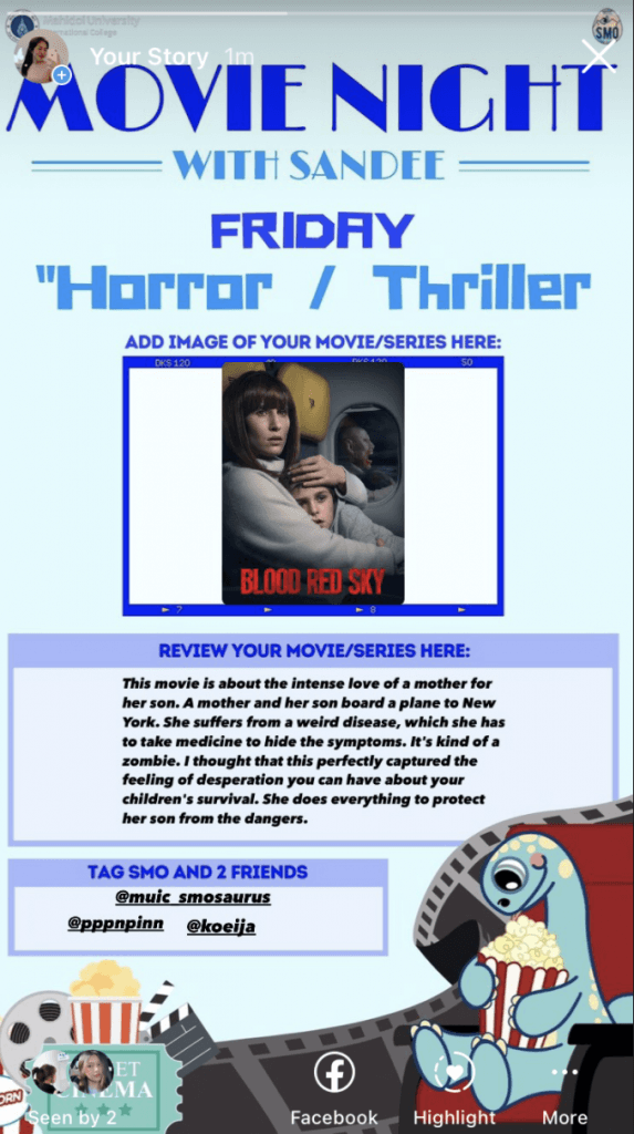Participants reviewed their favorite movies or TV series according to a daily theme from November 8 to 14, 2021, including fantasy, romantic comedy, action, crime, horror, cartoon and musical.