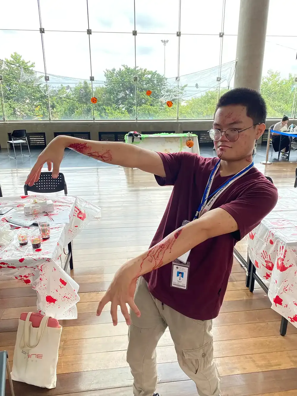 On October 31, 2023, the Science Society Club at Mahidol University International College (MUIC) embraced the Halloween holiday with a spine-tingling twist. It hosted a DIY Fake Blood Workshop, creating an eerie blend of science and spookiness.