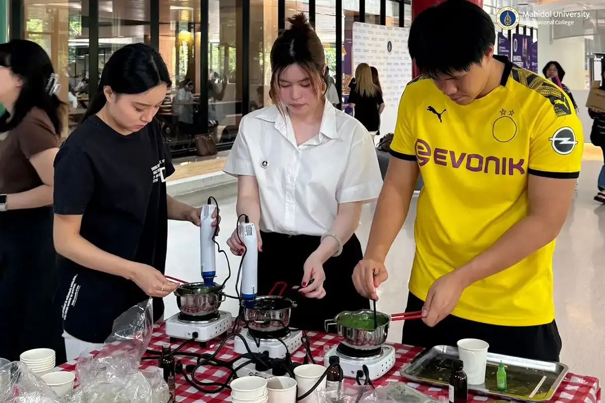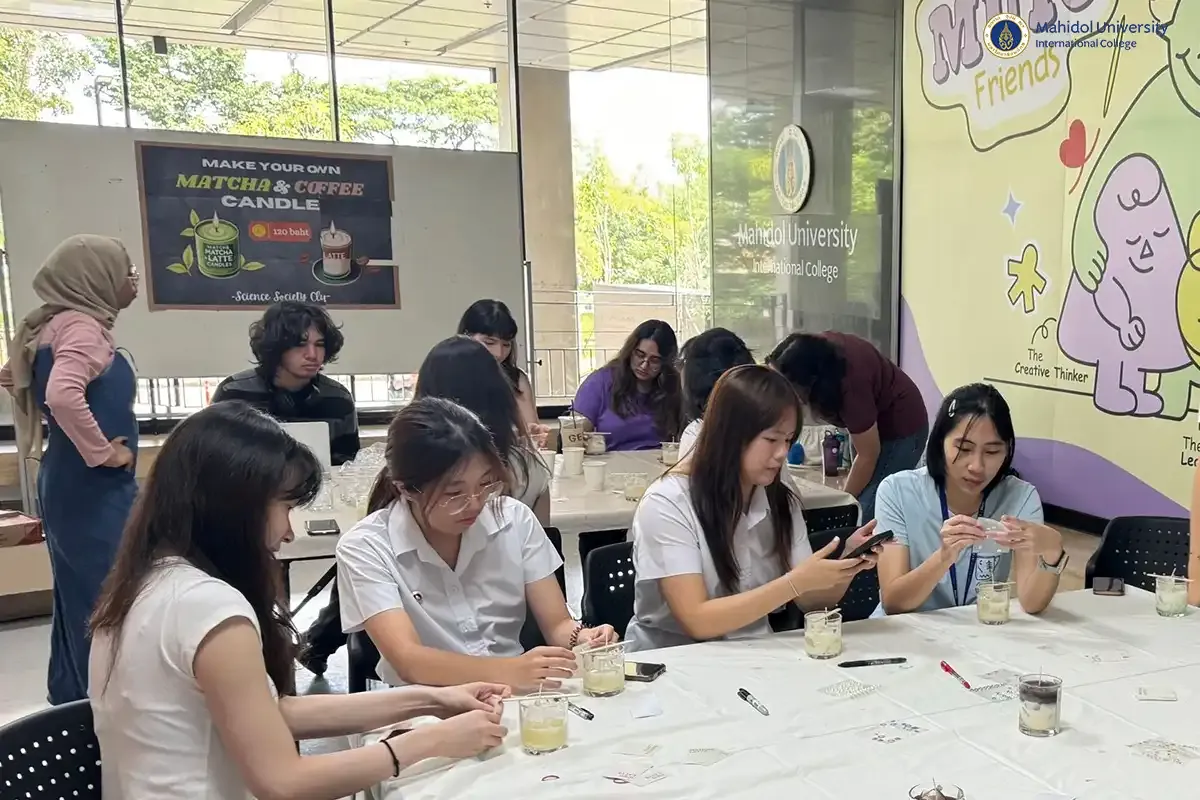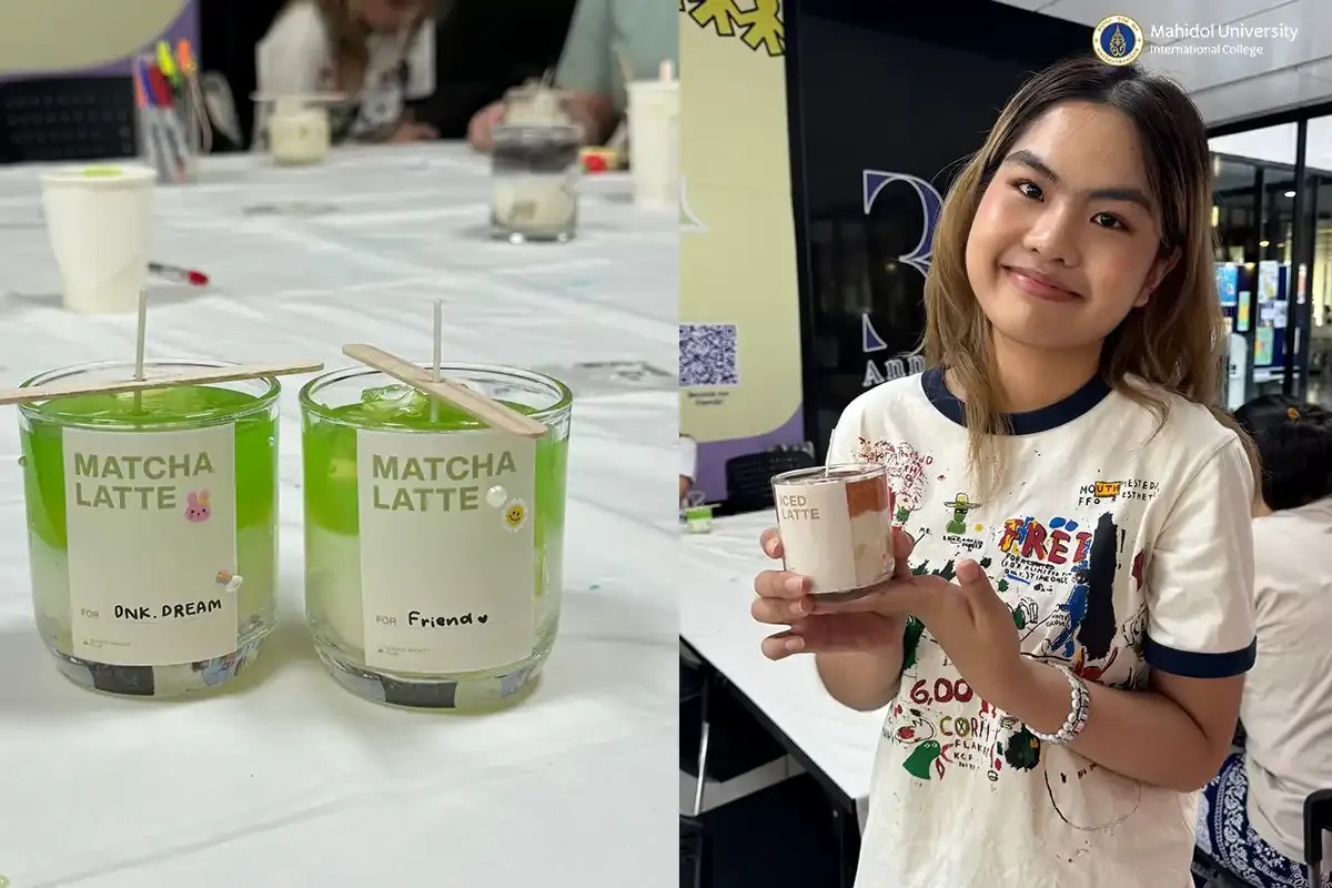 The Science Society Club of Mahidol University International Club (MUIC) held an exciting and aromatic activity, the “Matcha Latte & Iced Latte DIY Candle Workshop” on November 20, 2024 at the Ground Floor Lobby of Aditayathorn Building.