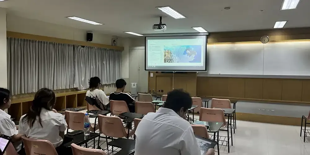 In this semester's sessions, the Diving Club had the privilege of hosting Mr. Jirat Kiratiratanakulchai, also known as Kame, a professional scuba diving instructor from Just Dive Thailand, who provided two theory sessions, offering participants a comprehensive understanding of scuba diving.