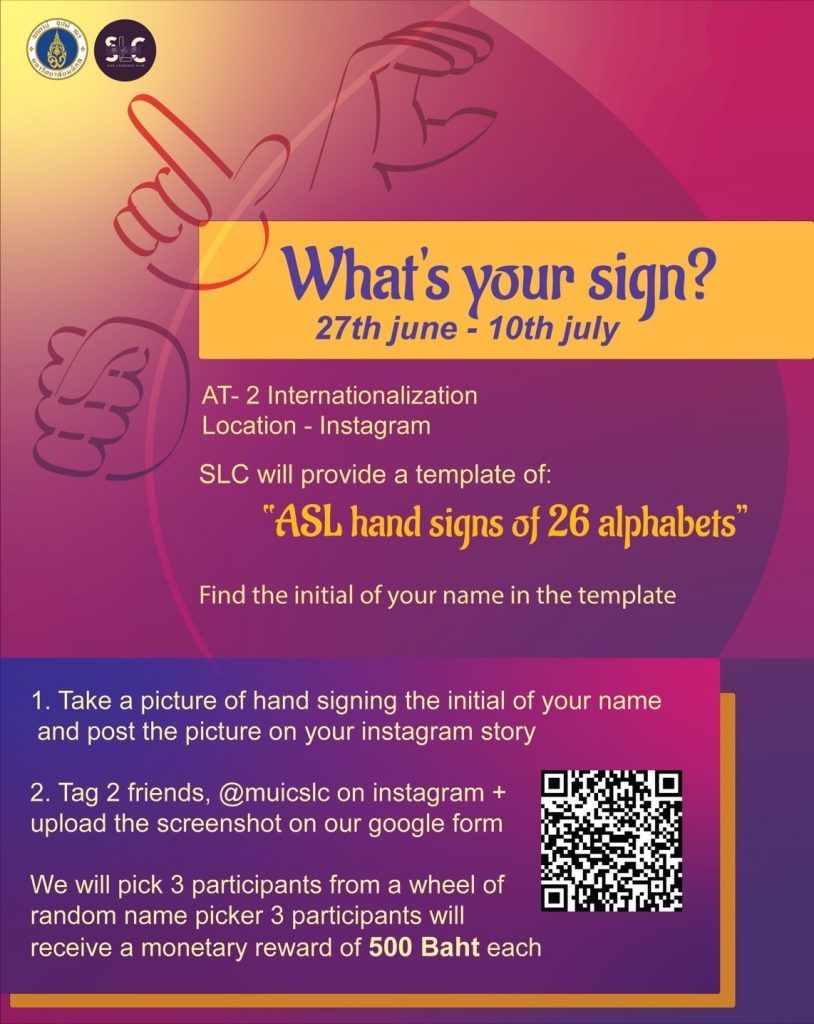 The Sign Language Club had an online activity named “What's Your Sign,” from June 27 to July 10, 2022.