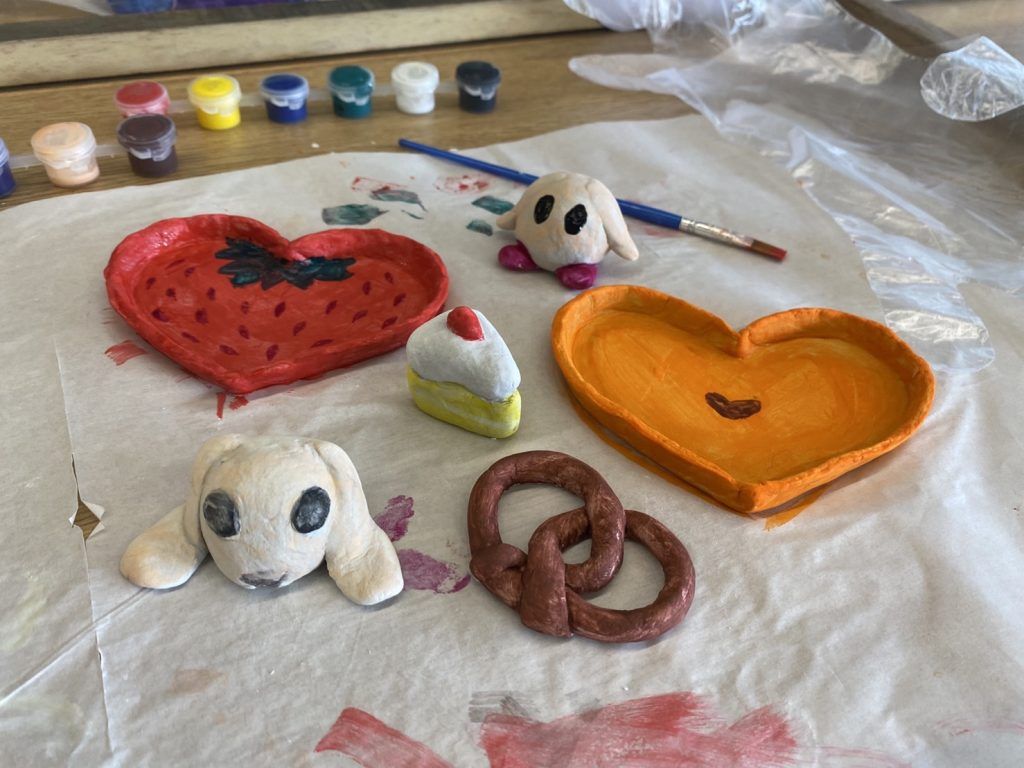 In the activity called “Happy Painting, Happy Hearing,” participants each bought a set of craft materials for 129 Baht containing a cube of clay, water color, brush, wax sheet and other materials like clay knife, roller, clay shaper and others. Using these materials, they were asked to build clay sculptures and paint them. Aside from the sale of these sets, there was also a box for separate donations.