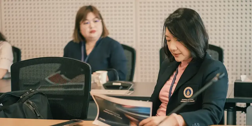 Ajarn Wimonsiri Hemtanon, Associate Dean for Student Affairs, along with MUIC faculty members, met the visitors at Meeting Room A302, Aditayathorn Building to discuss details of MUIC programs’ curricula and career trends.