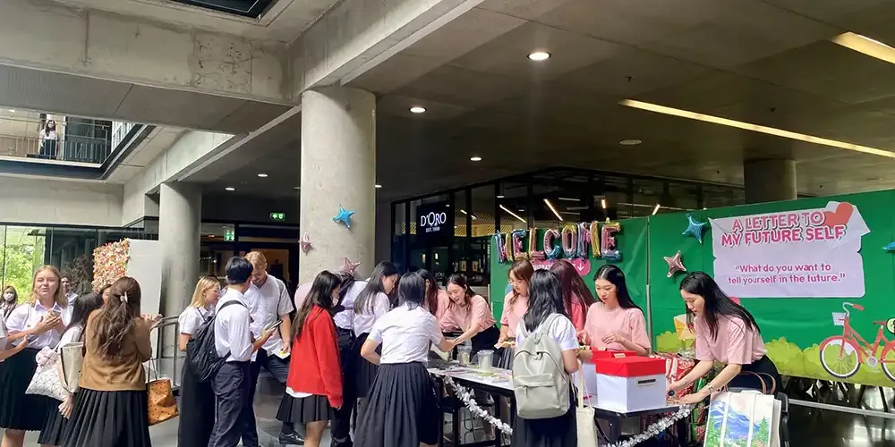 The activity attracted an approximately 1,000 participants who each enjoyed one main course dish and two appetizers from a variety of options in 10 restaurants that opened their booths. The students were also invited to paint or leave their messages on a big canvas, and there was also an activity where they can write a letter to their future selves (they can retrieve the card in future academic terms).