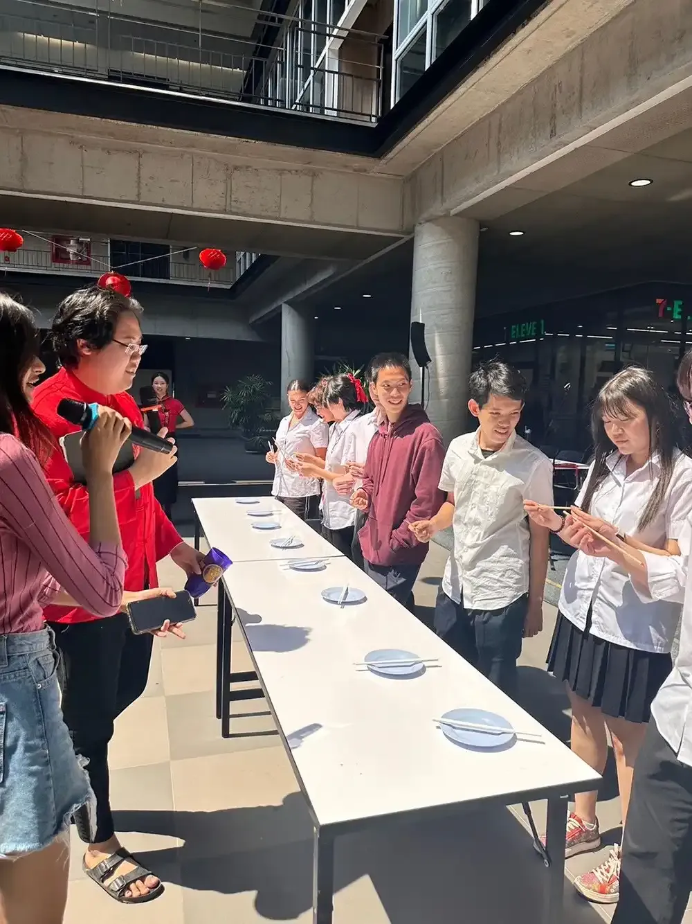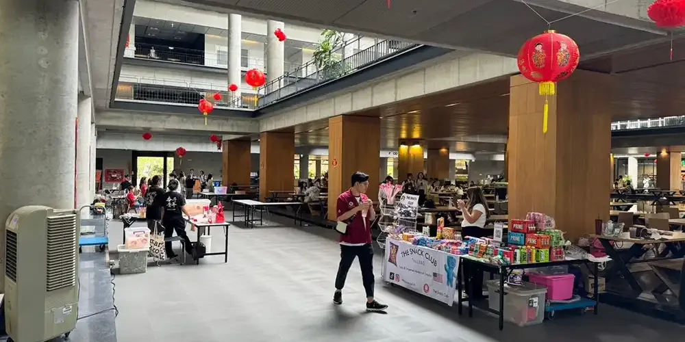Nearly 400 participants enjoyed the activity and provided positive feedback. They were able to visit various booths such as the popular Hong Bao booth where participants could win prizes, the Ribbon Writing booth where participants could write their wishes for Chinese New Year, Board Games booth, and six food stalls and vendors including Mixue, Food Eating Competition of Dumpling Roulette, and a variety of cultural performances, all providing a deeper understanding of Chinese culture and tradition. The ground floor was decorated with festive lanterns and the booths also matched the theme. ISC had a fun time hosting the event and it expressed its thanks to everyone who participated, adding that there would be more events soon.