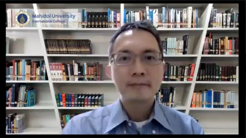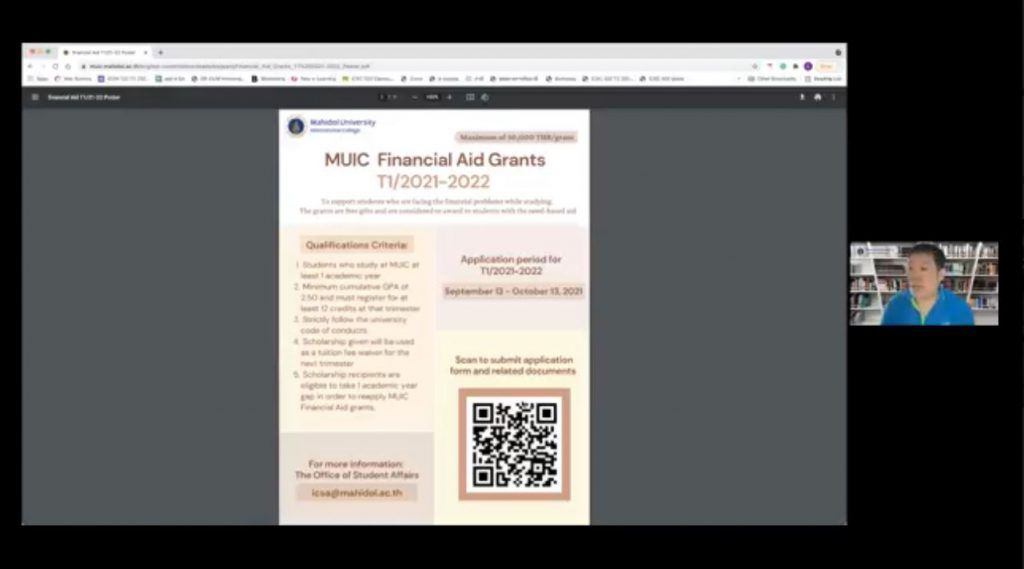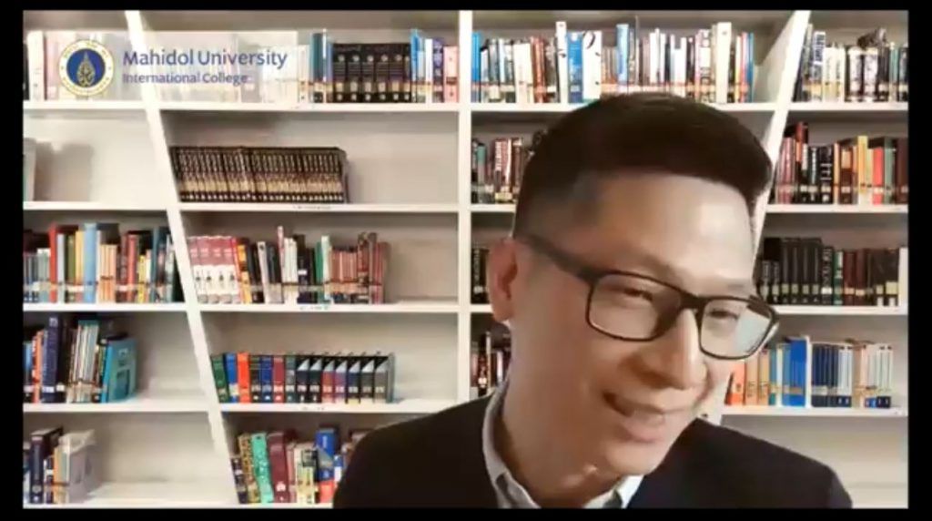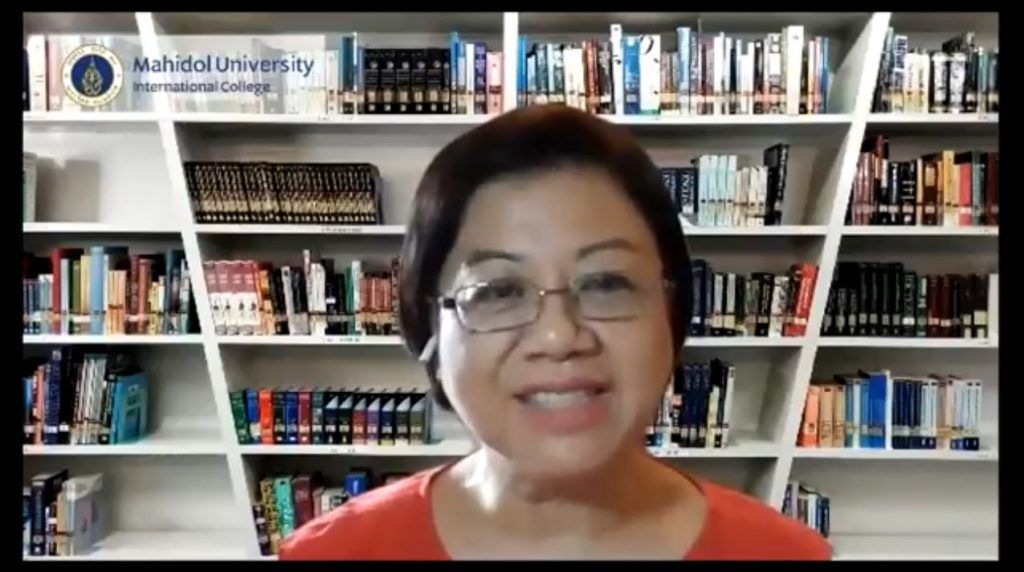 Assoc. Prof. Dr. Chulathida Chomchai, M.D., Dean of Mahidol University International College (MUIC), and the College’s executive team had a virtual meeting with students during an online event entitled “Talk to the Dean: The Living Room” on July 27, 2021 via Zoom application.