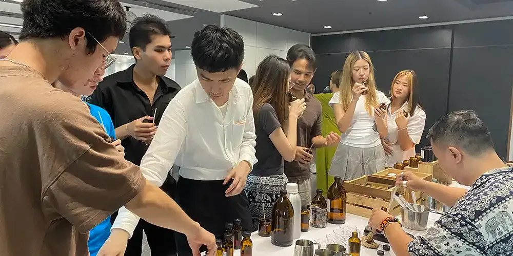 Held on May 23, 2024 at Room A235, Exhibition Hall, Aditayathorn Building, the event was a scented candle workshop wherein each of the 43 participants was provided with 100 grams of candle wax, jars, markers and other items needed for decoration along with fragrant oil with which they could use in making their unique candles.