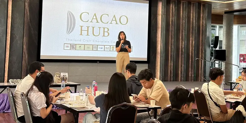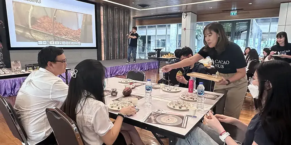 Cacao Hub is a community of individuals that processes cacao and manufactures them into chocolate in Thailand. This activity, entitled “Cacao Journey,” included a presentation on the history of cacao and its processing into chocolate and a workshop in which the participants took part in a taste test that included different cacao varieties. They were also taught how to create their own cocoa drink by infusing different cocoa and then mix it with hot milk.