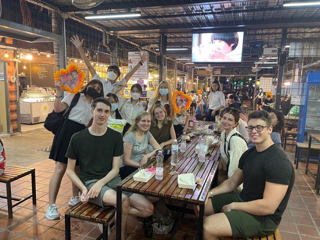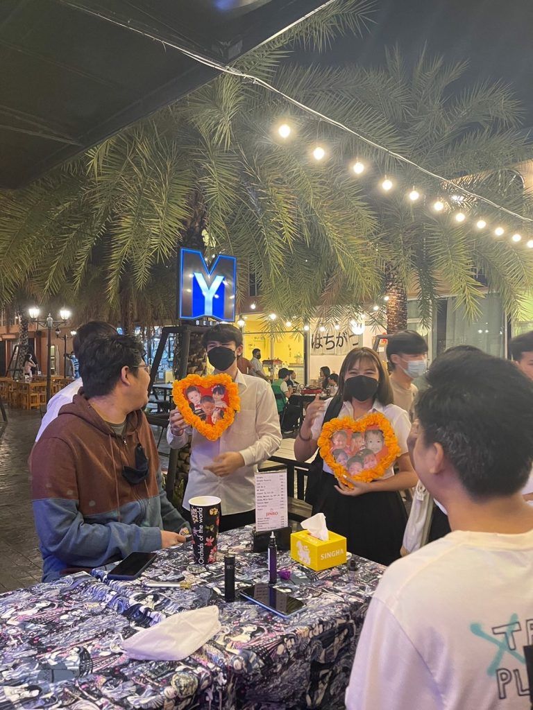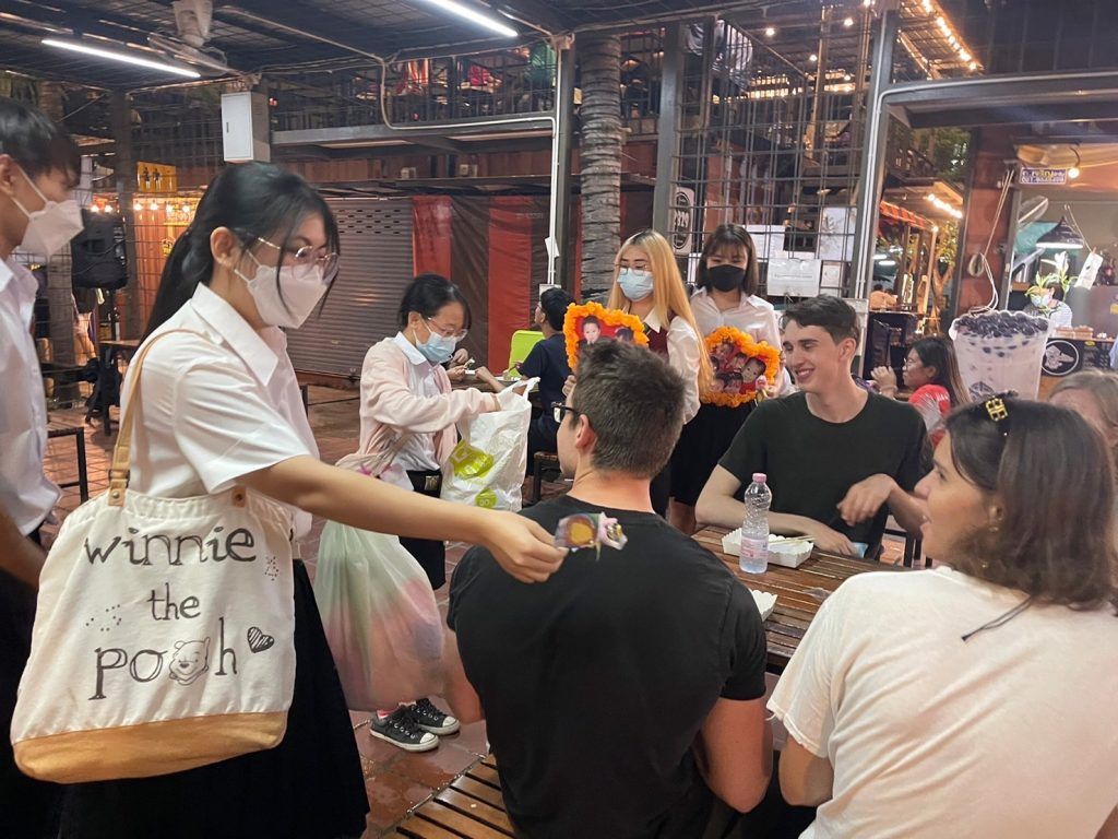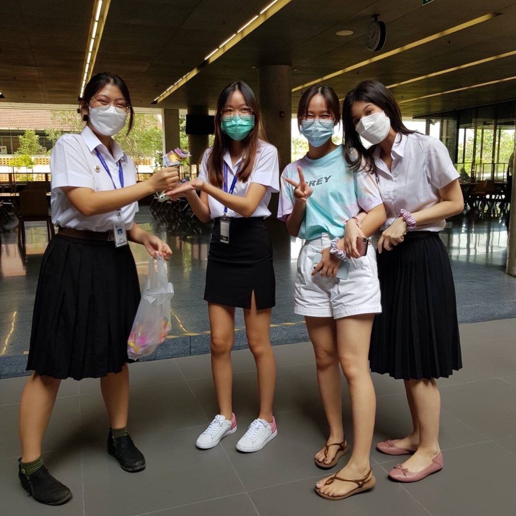 The Theatre Club gave away 100 lollipop flowers to Mahidol University International Club (MUIC) students and local residents as part of its activity called “JuJube Jukebox” held during February 1-11, 2022.