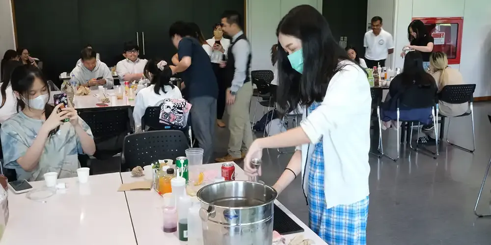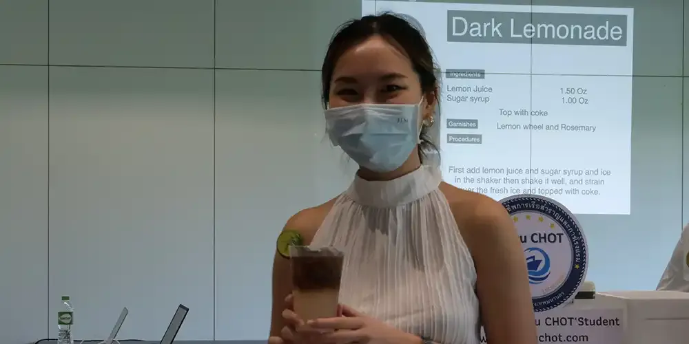 The THM Club’s first activity of the 3rd Trimester featured a guest speaker from Maruchot training school who taught 24 participating students the basics of making mocktails for many occasions. This activity, entitled “Drink! Drink! Mocktail!” took place on May 26, 2023 at Room A235, Exhibition Hall, Aditayathorn Building.