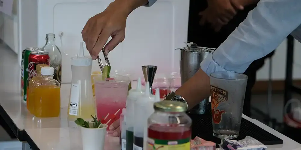 The participants were separated into groups of 6-8 per table as the guest speaker taught them how to create a mocktail during the workshop.