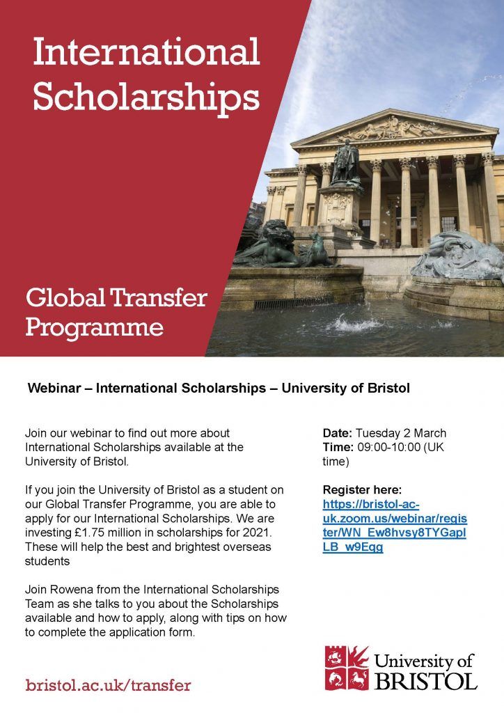 Join our webinar to find out more about International Scholarships available at The University of Bristol.