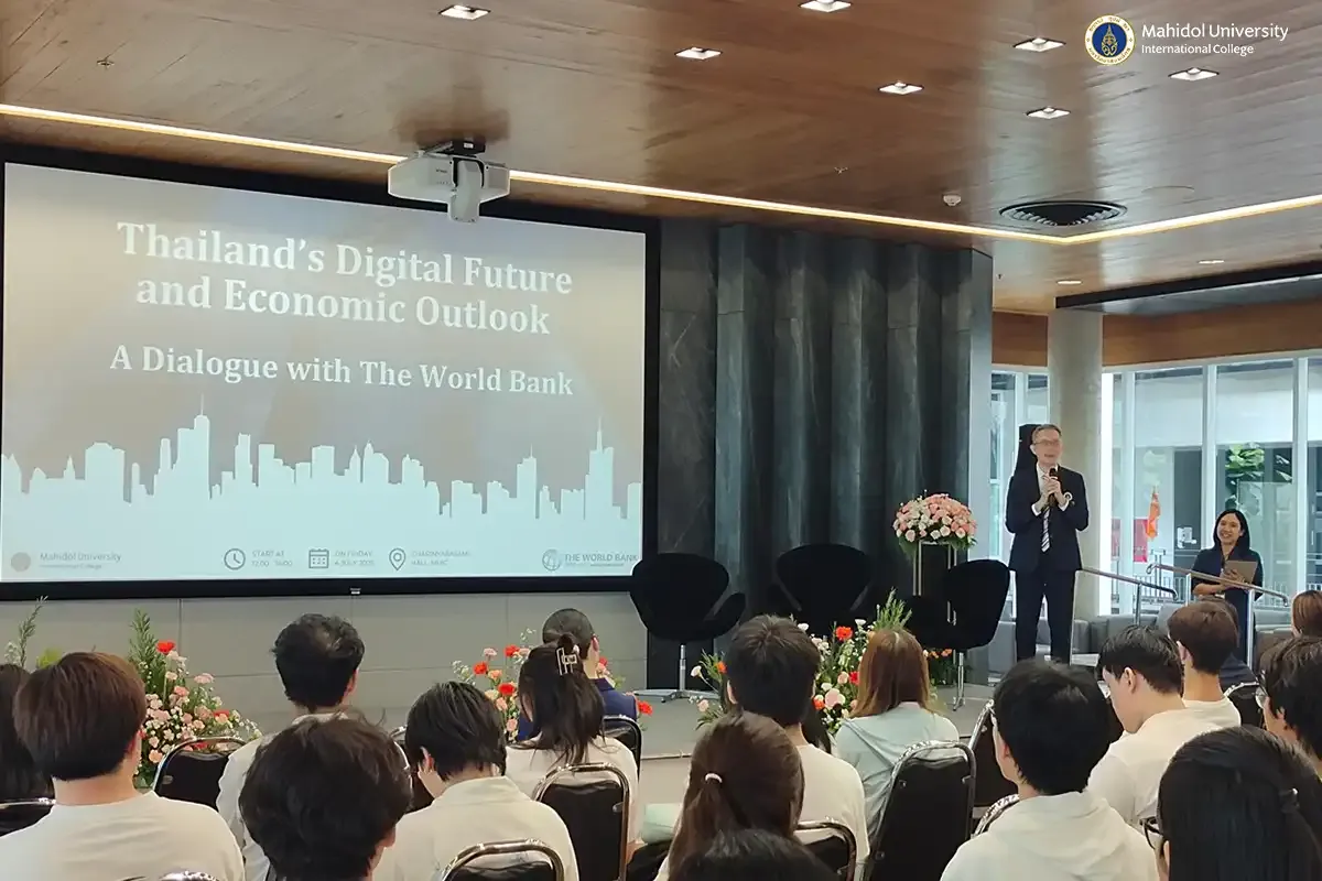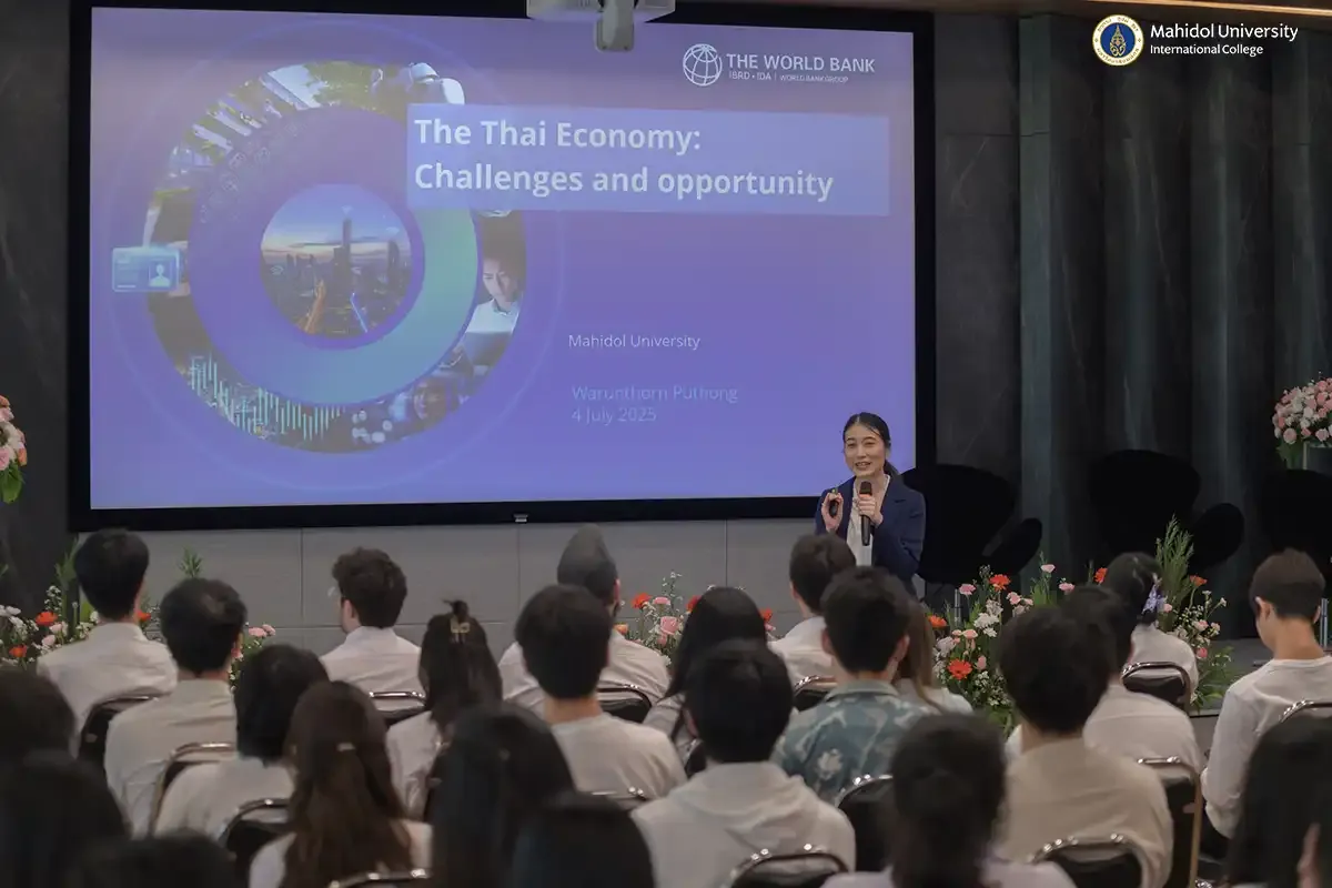 Mahidol University International College (MUIC) had the honor of welcoming representatives from the World Bank Thailand for a special talk on “Thailand’s Digital Future and Economic Outlook,” organized by the Business Economics major of the Bachelor of Business Administration (BBA) program.
