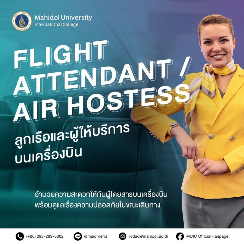 Cabin Crew” จำเป็นต้องมีทักษะด้านของภาษาซึ่งที่ MUIC มุ่งเน้นเพิ่มพูนทักษะด้านภาษาและเปิดโอกาสให้น้องๆ นักศึกษาได้เลือกเรียนภาษาต่างประเทศมากถึง 5️ ภาษา ได้แก่ เยอรมัน, ญี่ปุ่น, ฝรั่งเศส, จีน และสเปน และมุ่งเน้นไปที่การเรียนรู้ด้านวัฒนธรรมของภาษานั้นๆ อีกด้วย นอกจากนี้ยังมีวิชาที่ช่วยส่งเสริมความฝันในด้าน