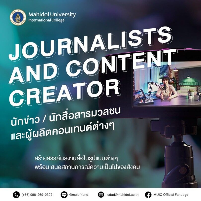 Journalists and Media Creator และต้องการที่จะต่อยอดในเส้นทางนี้ ที่ MUIC มีวิชาที่จะช่วยตอบโจทย์ความสามารถได้เป็นอย่างดี ไม่ว่าจะเป็น