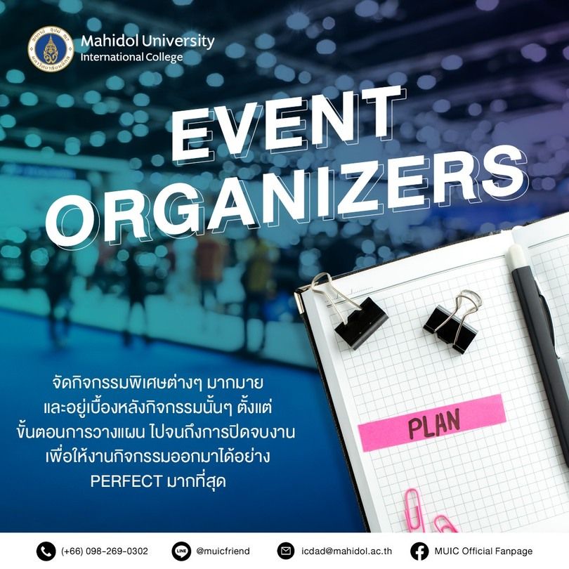 สำหรับน้องๆ คนไหนที่มีความชื่นชอบในด้านของงานกิจกรรมต่างๆ MUIC ขอแนะนำอาชีพ
