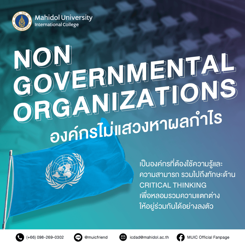 NGOs ( Non Governmental Organizations ) หรือองค์กรไม่แสวงหาผลกำไรต่างๆ เป็นอีกหนึ่งเส้นทางอาชีพที่น้องๆ หลายคนให้ความสนใจ เนื่องจากเป็นองค์กรที่มีความหลากหลายในด้านของชนชาติ ภาษา วัฒนธรรม ซึ่งต้องใช้ความรู้และความสามารถ รวมไปถึงทักษะด้าน