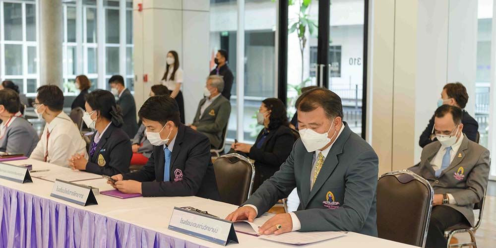 เมื่อวันที่ 1 เมษายนที่ผ่านมา ศาสตราจารย์ แพทย์หญิงจุฬธิดา โฉมฉาย คณบดีวิทยาลัยนานาชาติ มหาวิทยาลัยมหิดล เป็นประธานในพิธีลงนามความร่วมมือ MOU Signing Ceremony : MEET Program 2022 ระหว่างวิทยาลัยนานาชาติและผู้บริหารจากโรงเรียนมัธยมศึกษาตอนปลายชั้นนำจำนวน 34 โรงเรียนชั้นนำทั่วประเทศ ณ ห้องจรินทร์ยารัศมิ์ อาคารอทิตยาทร วิทยาลัยนานาชาติมหาวิทยาลัยมหิดล โดยมีรองศาสตราจารย์ ดร.ชาญชัย ผลถานุกิติถาวร รองคณบดีฝ่ายสื่อสารองค์กรและสารสนเทศ กล่าวรายงานถึงโครงการนี้ ตามลำดับ