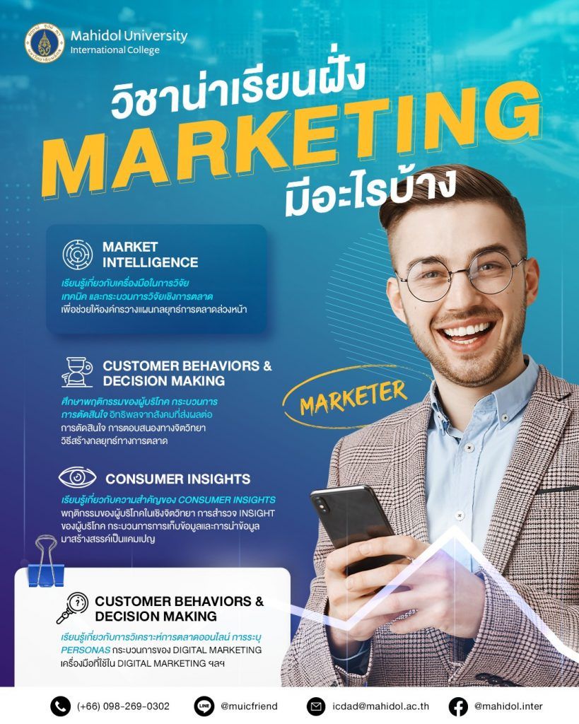 วันนี้ MUIC จะพาทุกคนไปส่องกันว่าสาขา Marketing ของเรามีวิชาอะไรน่าเรียนบ้าง ถ้าทุกคนพร้อมแล้ว ไปดูกันเลย!
