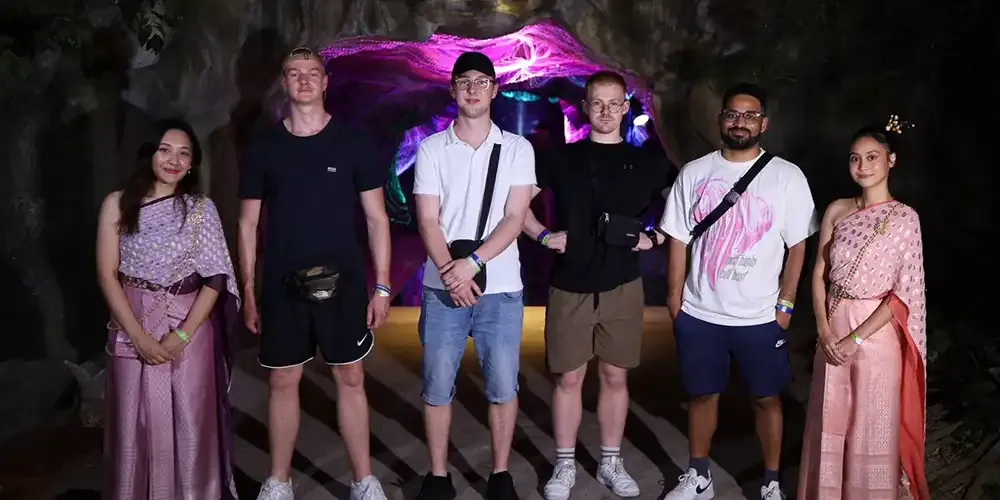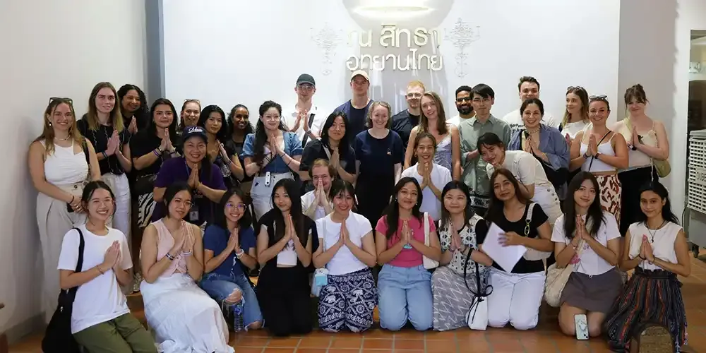 จากนั้นคณะนักศึกษาแลกเปลี่ยนเดินทางไปยัง ณ สัทธา อุทยานแห่งเรียนรู้ และแหล่งท่องเที่ยวเชิงอนุรักษ์วัฒนธรรมไทย จ.ราชบุรี งานนี้นักศึกษาชาวต่างชาติล้วนได้สัมผัสความเป็นไทยและได้รับความสนุกสนานประทับใจกันถ้วนหน้า