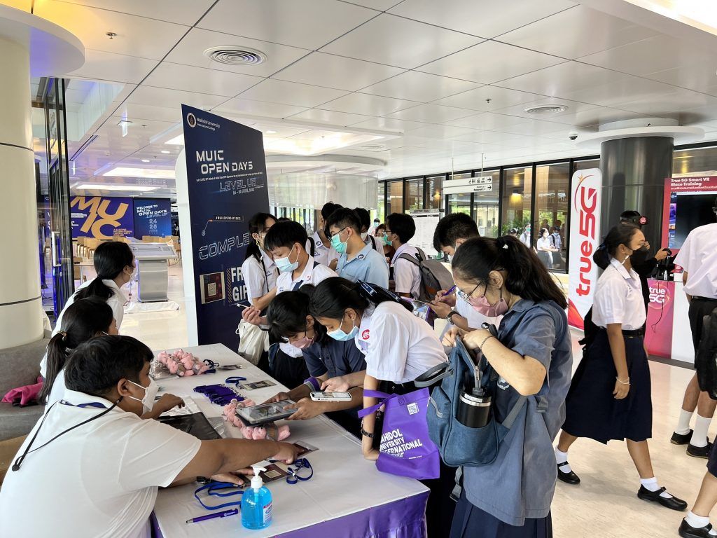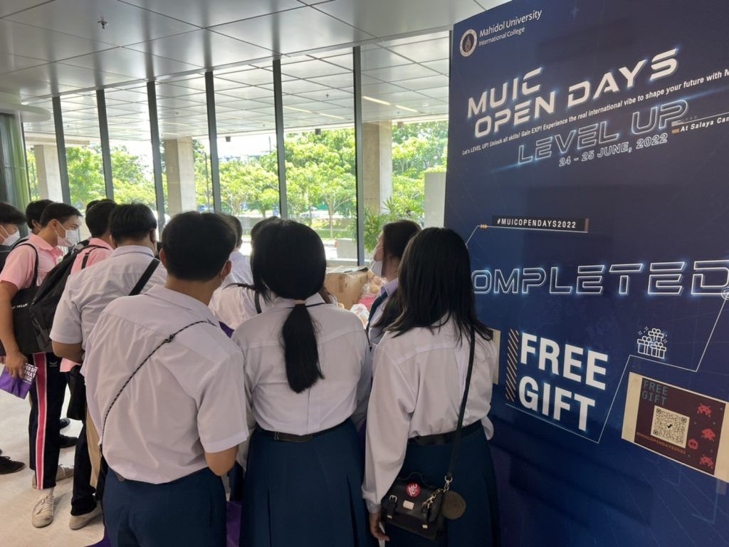 เมื่อวันที่ 24-25 มิถุนายนที่ผ่านมา วิทยาลัยนานาชาติ มหาวิทยาลัยมหิดล จัดกิจกรรม MUIC Open Days - Level UP 2022 ณ อาคารอทิตยาทร วิทยาลัยนานาชาติ ม.มหิดล โดยมีศาสตราจารย์ แพทย์หญิงจุฬธิดา โฉมฉาย คณบดีวิทยาลัยนานาชาติ เป็นประธานในพิธีเปิดงาน กิจกรรมครั้งนี้ถือได้ว่าเป็นงานเปิดบ้านครั้งแรกในรอบ 2 ปี แบบ On Campus