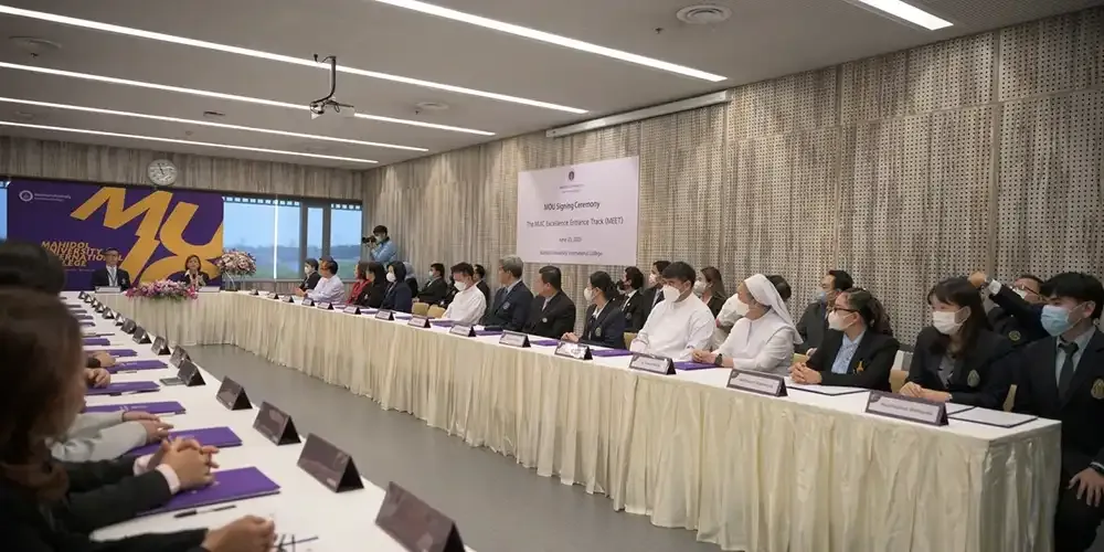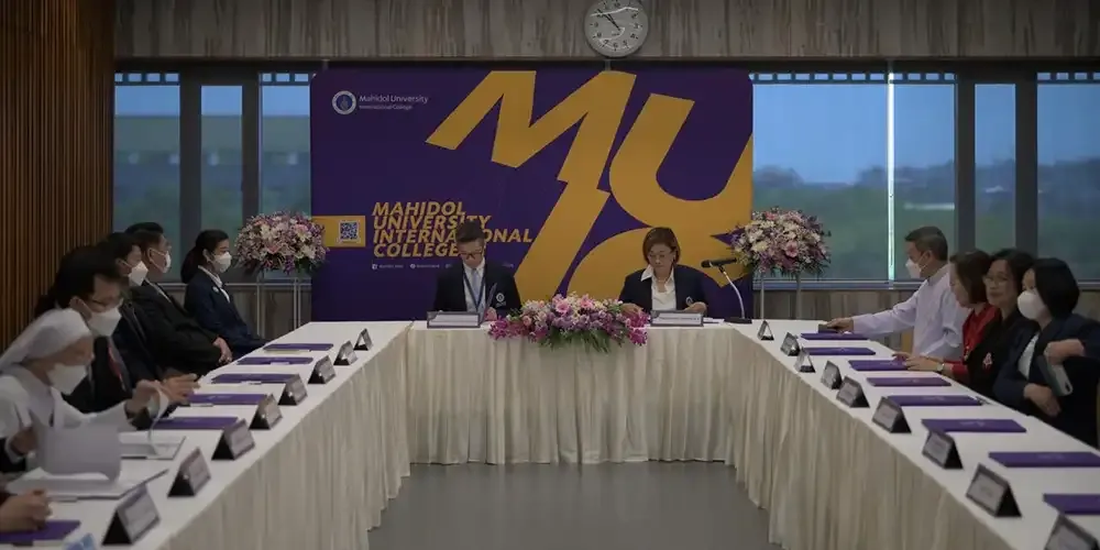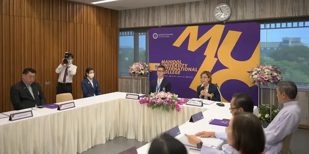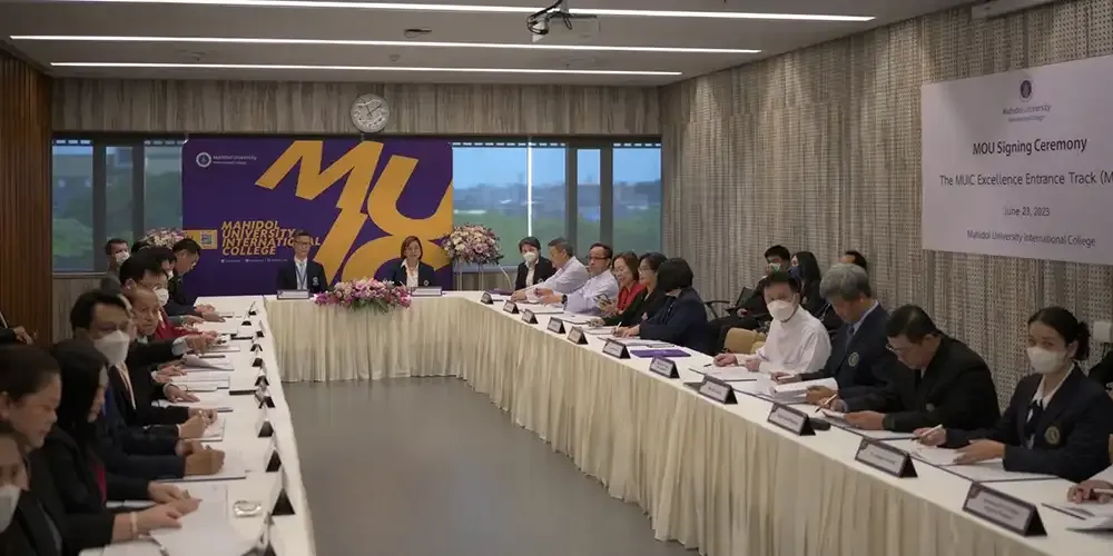 วันที่ 23 มิถุนายน 2566 ศาสตราจารย์แพทย์หญิงจุฬธิดา โฉมฉาย คณบดีพร้อมผู้บริหาร วิทยาลัยนานาชาติ มหาวิทยาลัยมหิดล ร่วมลงนามความร่วมมือในโครงการ MUIC Excellence Entrance Track (MEET) ประจำปีการศึกษา 2566-2569 กับผู้บริหารจากโรงเรียนมัธยมศึกษา 36 สถาบันทั่วประเทศที่ ณ อาคารอทิตยาทร วิทยาลัยนานาชาติมหาวิทยาลัยมหิดล