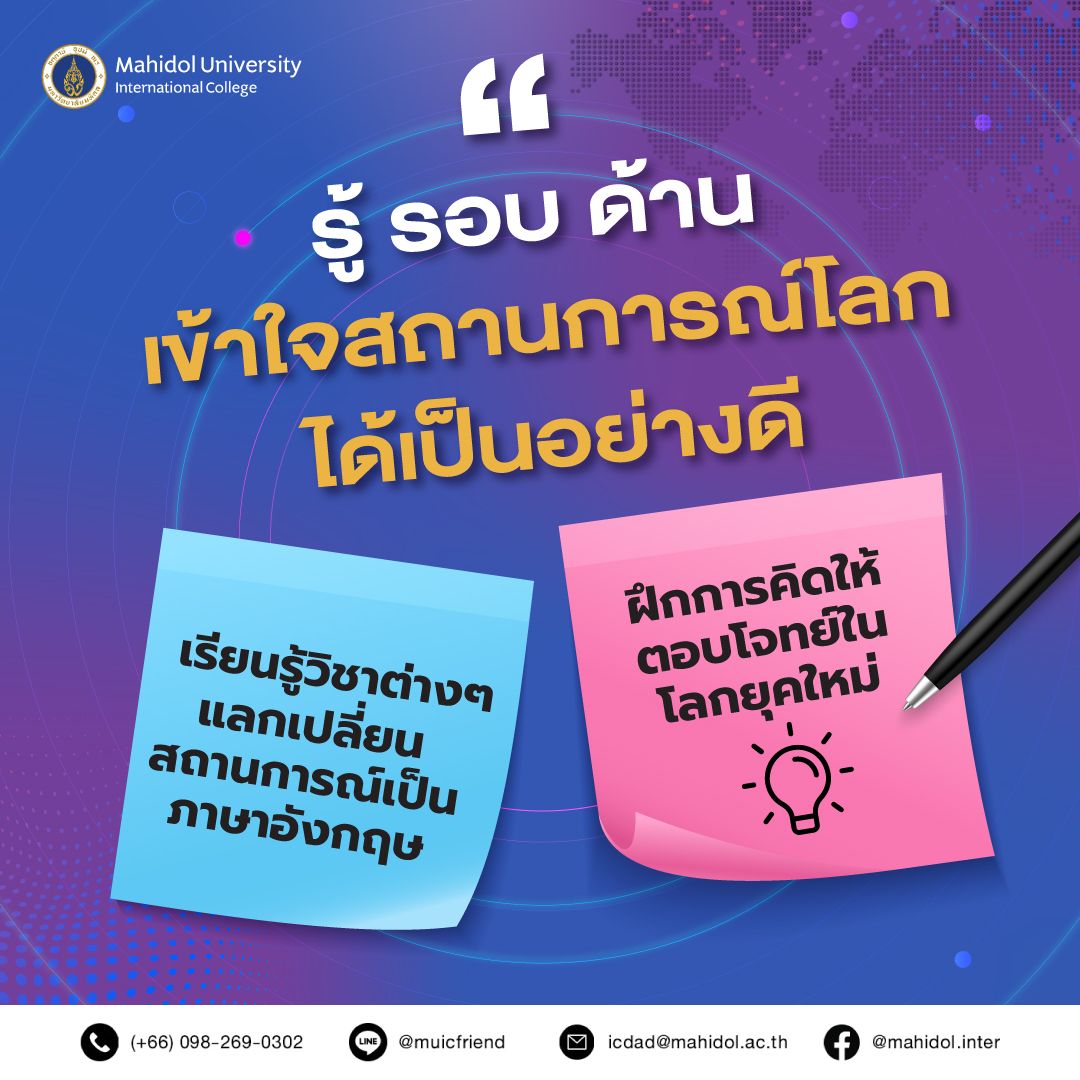 #MUIC #MahidolInter #MahidolUniversity #วิทยาลัยนานาชาติ #มหาวิทยาลัยมหิดล #มหิดลอินเตอร์ #DEK65 #DEK66 #StudyinThailand #TCAS65 #TCAS66